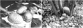 1. Guanábana (Annona muricata) en un mercado de Saigón, 1968. Excepcionalmente grandes y bien formados / 2. El árbol de guanábana puede dar frutos en cualquier parte de su tronco o ramas. Los múltiples tallos de este árbol son el resultado de haber sido congelados en el suelo más de una vez.